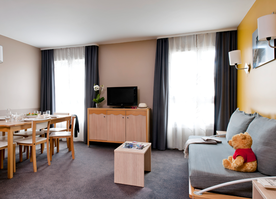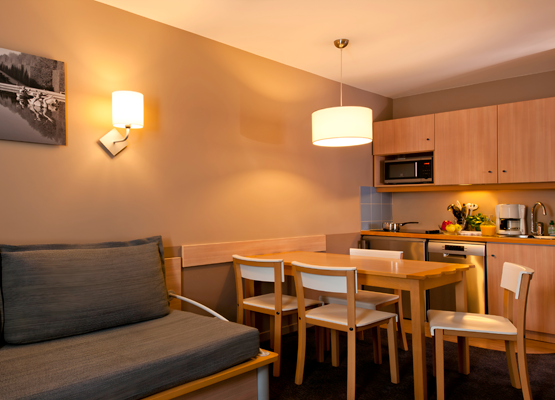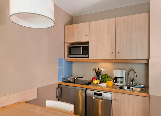 The kitchenette includes a refrigerator, hob, microwave oven and dish washer.
