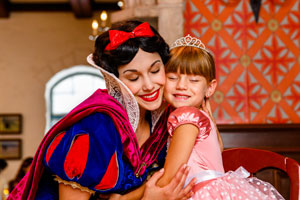 Join Disney Princesses for Storybook Dining inside a medieval castle with soaring archways and cathedral ceilings. Her Highness the Queen is holding a feast in honour of the world's best-loved Storybook Princesses.