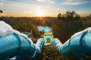 Take this snowy mountain by storm as you slalom down one of 3 winding waterslides.