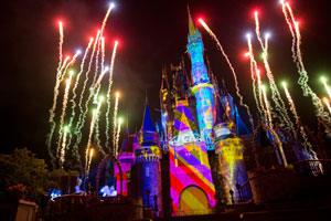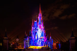 Enjoy a spellbinding nighttime show that brings Cinderella Castle to life with Disney scenes and characters.